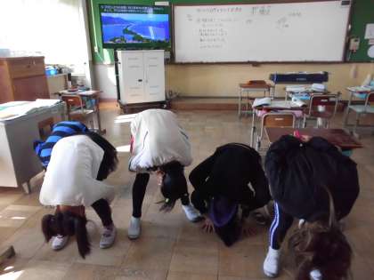 社会「ゆたかな自然を生かす宮津市」では,日本三景「天橋立」の学習を進めています。「さて,どんな形に見えるかな?」と,有名な「股のぞき」をみんなでしてみました。子ども達には「龍」ではなく「鳥」に見えたようです。