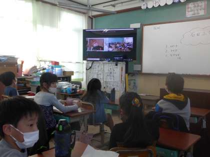 小栗栖小学校の3年生とZoomをつないで,オンラインで交流学習をしました。