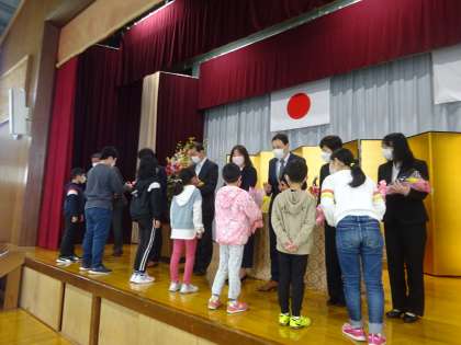 3月30日 令和3年度離任式を行いました。12名の教職員が離任することになり,子どもたちとの別れを惜しむこととなりました。子どもたちは離任者のお話を心に響かせながら,聞いていたことだと思います。石田小学校に残る者にとっても,4月からの新たな生活に向けて,節目となる大切な時間となりました。