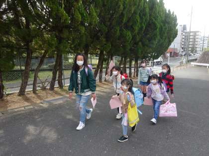 周りのみんなが,1年生の歩くスピードに合わせている姿が