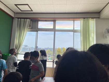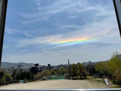 5年生の教科書配りをしていると,空に虹色に輝く雲が。