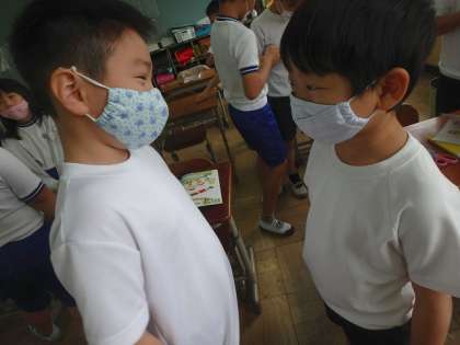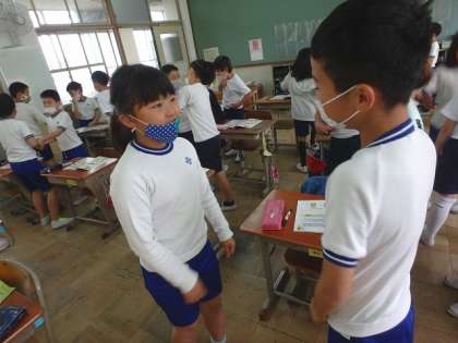 3年生初めての外国語活動です。どのような学習をするのか確かめた後,「Hello! My name is〜.」と友達と自己紹介をし合いました。恥ずかしがらずに楽しそうに取り組めるのが3年生のすてきなところです!