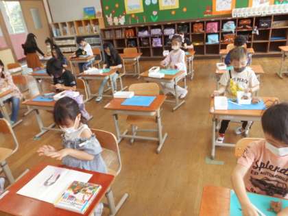 1年生は今週の中間休みは教室で過ごしています。粘土あそびをしたり,お絵かきをしたり,読書をしたり,おしゃべりしたりして過ごしています。