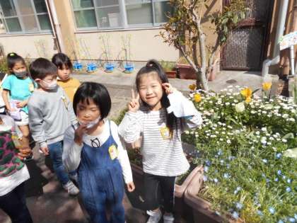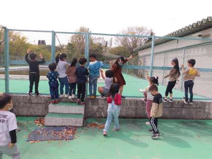 学校の運動場やビオトープの様子を見に行きました。