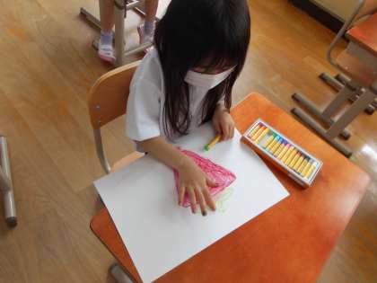 パスを使って画用紙に描くことを楽しんでいました。