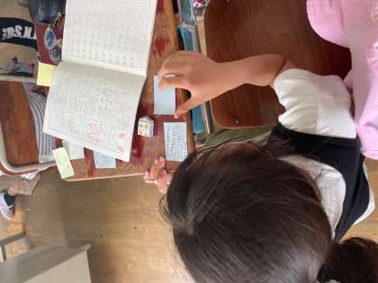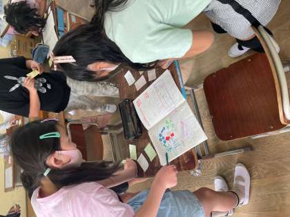 友達の自主学習を見ながら,自分がマネしたいところも探していました。