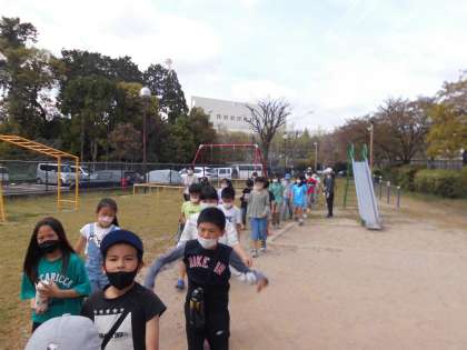 校区探検に行ってきました。石田と小栗栖の校区のいいところをお互いに紹介しながら探検しました。初めて行く場所もあり,楽しく探検することが出来ました。校区のルールやマナーを守って遊びましょう。