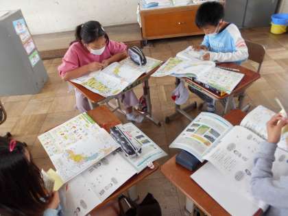 社会科の学習で,どこにどんな都道府県があるのかを調べました。班で協力しながら,47個ある都道府県の場所を確認することが出来ました。1都1道2府43県あることも分かりました。