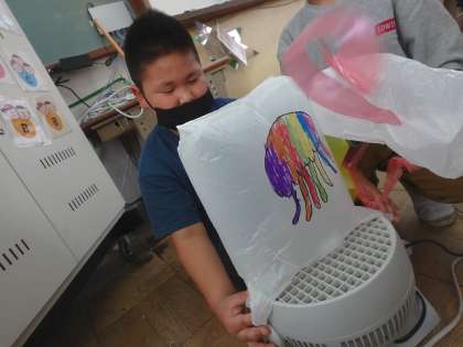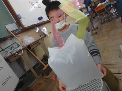 実際にふき上がる自分の作品を見て,子どもたちは大喜び!!!とても楽しい時間となりました。