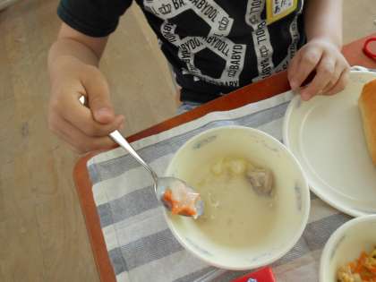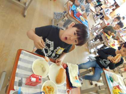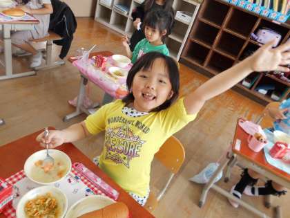 また,クリームシチューの中に「ハッピーキャロット(星形のニンジン)」が入っている子もいて,喜んでいました。