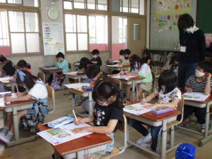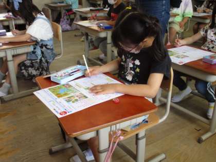 テストの表やグラフ,問題を見ながら集中して解いていました。