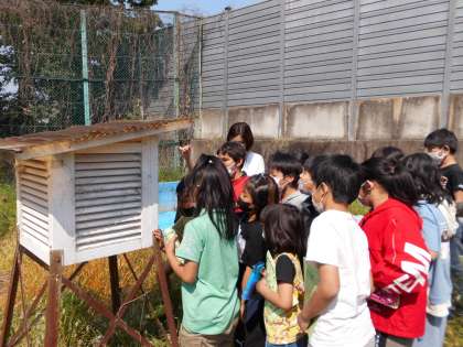 理科の「天気と気温」で使う百葉箱を見に行きました。これからどのように気温が変わっていくかを調べていきます。