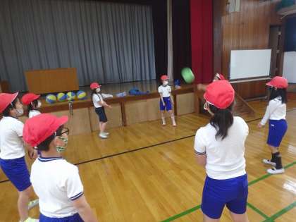 次はみんなで「だるまさんがころんだ」や「風船バレー」に挑戦!大盛り上がりでした!