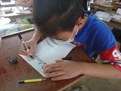 先生の英語での自己紹介を聞いたり,自分の名前カードを作ったりしました。