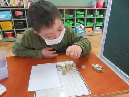数字の学習と形合せをやりました!数字はしっかりと順番を覚えて,並べることができました!形合せも先週よりたくさんの色板を並べられました。