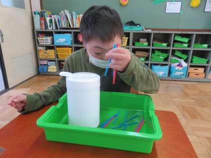 自立活動は短期間に集中して頑張っていました!指先での操作が物の大きさによって変わるのですが最近どの操作でも集中して頑張っています!
