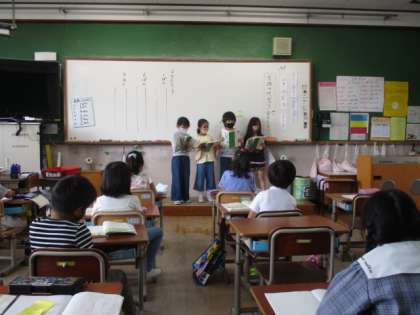 みんなの前で発表するとあって少し緊張した様子も見られましたが,練習の成果を発揮して,どのグループもしっかりと発表することができました。