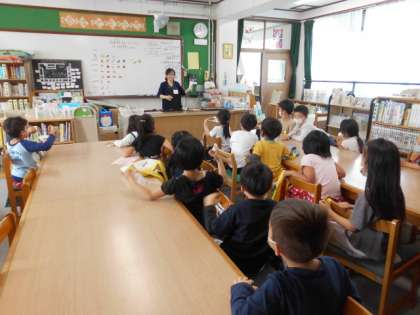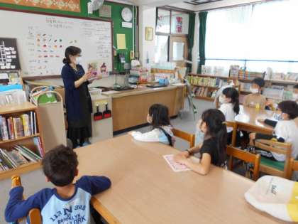 初めて学校図書館に行きました。図書館の使い方を紙芝居を通して教えて頂きました。