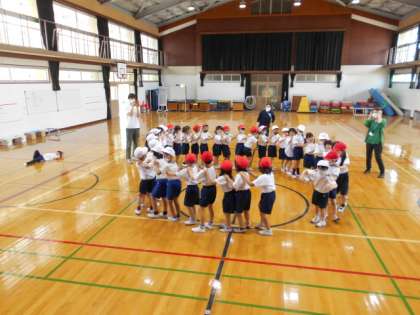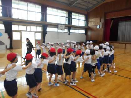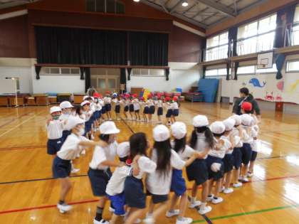 体育ではフォークダンスに取り組んでいます。みんなで楽しく元気よく踊っています。