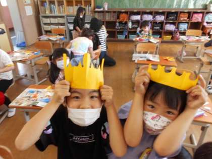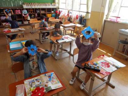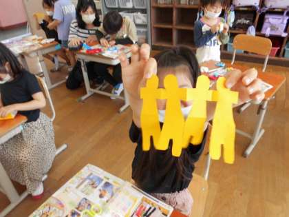 ちょきちょきかざりでははさみの使い方を確認して教科書にのっているかざりを作りました。次の図工の時間は自分で好きな色を選んで好きな飾りを作ります。