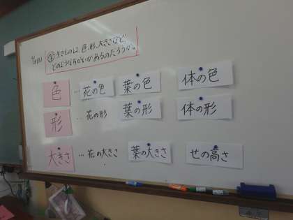観察をして気づいたことについて友達と話し合いました。自分の意見を進んで発表する姿がすてきでした。