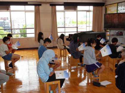 曲の速さや雰囲気をみんなで話し合い,リズムにのって明るくひびきのある歌声で歌おうとしていました。