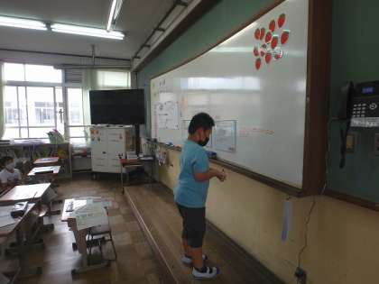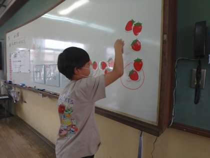 わり算の学習が始まりました。この日は,同じ数ずつ分ける計算を「わり算」ということを学習しました。「どうしてそうなったの?」「図を使って説明できる!」と進んで自分の意見を発表する姿がすてきでした。