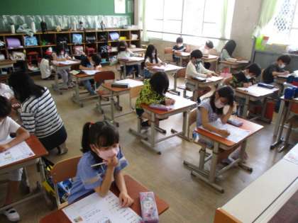 「たし算とひき算」の学習が終わったので,テストをしました。