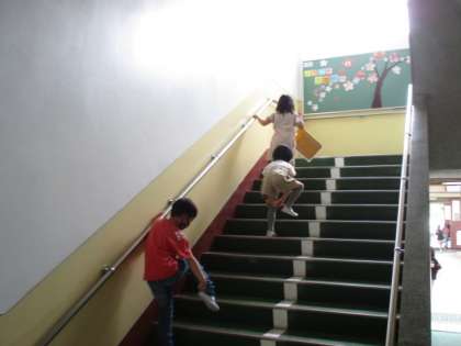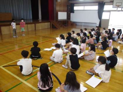 たてわりの1・2年グループとなり,2年生が1年生に学校の案内をします。