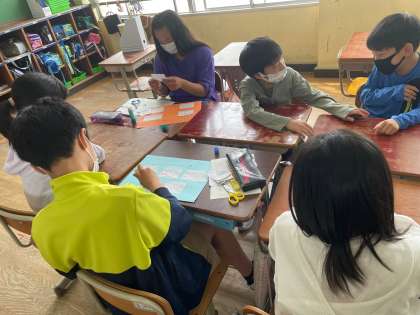 1年生に向けてのプレゼントづくりをするため,縦割りグループで集まりました。