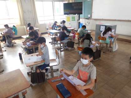 4年生になり初めての算数のテストに取り組みました。集中してテストに取り組むことができました。結果が楽しみです。