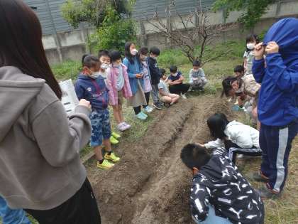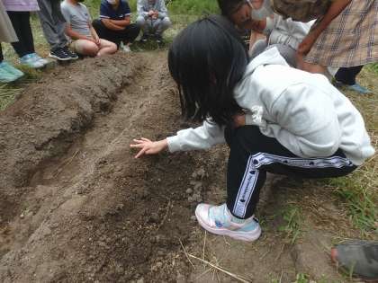 「ホウセンカ」「ダイズ」「ヒマワリ」「オクラ」の種を植えました。