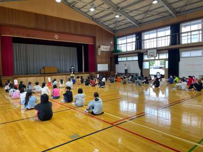 部活動に入る子たちが体育館に集まり,持ち物や時間などの約束について確認しました。