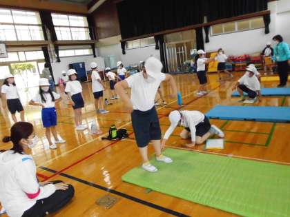 新体力テストを行いました。あいあいグループの2年生・5年生と一緒に周りました。ソフトボール投げ・長座体前屈・反復横跳び・立ち幅跳びに挑戦!!一生懸命頑張っていました。