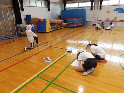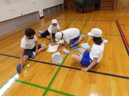グループで考えたオリジナルパワーアップ体操をロイロノート機能を使って動画撮影しました。