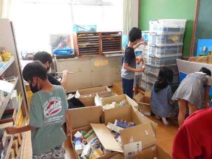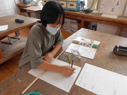 図工準備室の材料を見て,目を輝かせながらどんな筆にしようか考えていました。