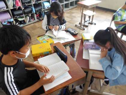漢字辞典の使い方を学習しました。総画さくいん,音訓さくいん,部首さくいんがあることを学び,やり方を知りました。これからわからない漢字があったら漢字辞典で調べるようになってほしいと思います。