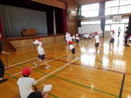 あいあいグループの1年生と共に,体力テストをおこないました。