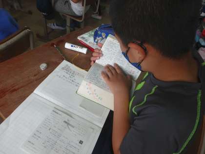 国語辞典の使い方を学習しました。この日は,基本的な使い方を知り,「つめ」や「はしら」を見ながら実際に言葉を調べてみました。自分の探している言葉が,今見ているページより前にあるのか,後ろにあるのかを判断するのが難しかったようです。普段の授業でも国語辞典を使って,慣れていきたいですね。
