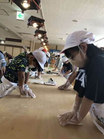 6年 修学旅行(24) うどん作ってます!