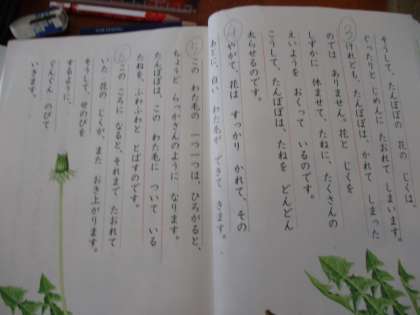 わた毛ができたころのたんぽぽのちえについて読み取りをしました。