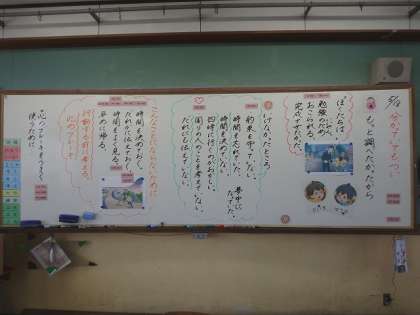 「もっと調べたかったから」の話を読み,節度ある生活について考えました。「分かっているんだけど,つい…」という気持ちは大人でもあるのではないでしょうか。子どもたちも普段の生活を振り返りながら,「分かっているんだけど,ついついやってしまった…」という体験を話してくれました。