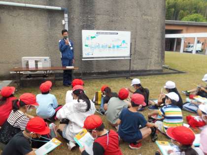 まずは,水がきれいになるまでの工程を簡単に説明していただきました。わかったことはしっかりとメモをしながら聞くことができました。