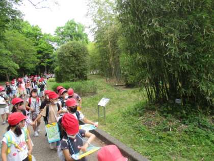 植物園では,1・2年生のたてわりグループのメンバーと一緒にウォークラリーをしました。