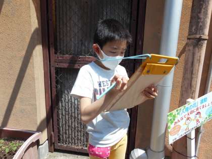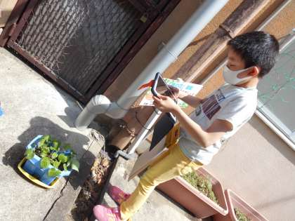 育てているあさがおの観察をしています。