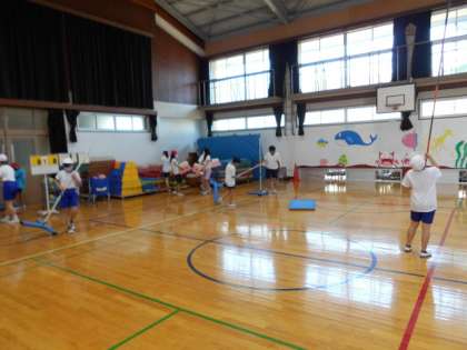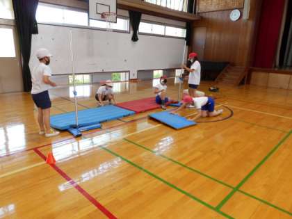 体育の学習では「走り高跳び」をおこなっています。
