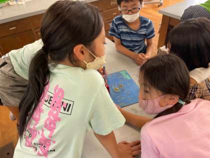 ヨウ素液を使って,種子の中に含まれる養分を調べていきました。