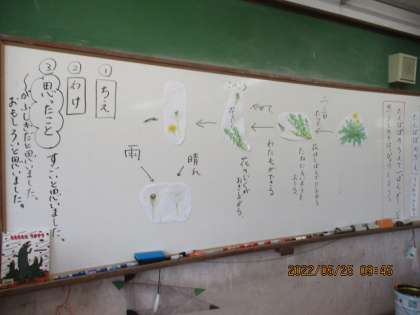 「たんぽぽのちえ」で一番かしこいと思ったことをノートに書いて,交流をしました。