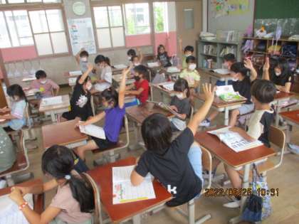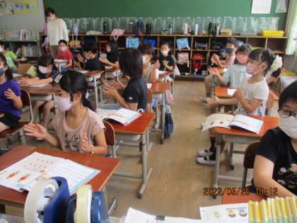 みんなで曲のリズムにあわせて,手拍子をつないでいくと途切れずにみんなで拍をつなぐことができました。