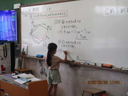 また,10mm=1cmになることを使って,mmどおしのたし算が10mmを超えると繰り上がりのようになることにも気づくことができました。